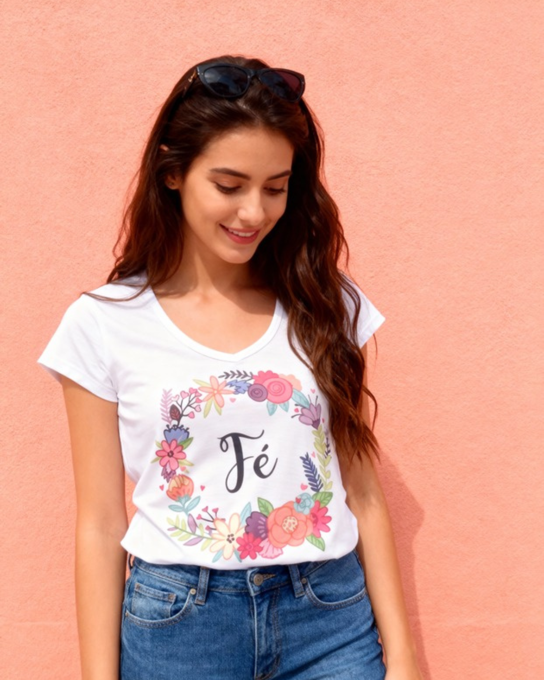 Descubre nuestra remera “Fe”, una prenda fresca y versátil que complementará tu estilo. Confeccionada en suave algodón blanco, presenta un diseño encantador con un bordado de flores coloridas que enmarcan la palabra «Fe» en un elegante estilo tipográfico. Su corte con escote en forma de V y manga corta la hacen ideal para cualquier ocasión, desde un día casual en el parque hasta un encuentro con amigos. Combinada con jeans o una falda, esta blusa se convertirá en una pieza clave de tu armario. ¡Luce radiante y llena de buena energía!