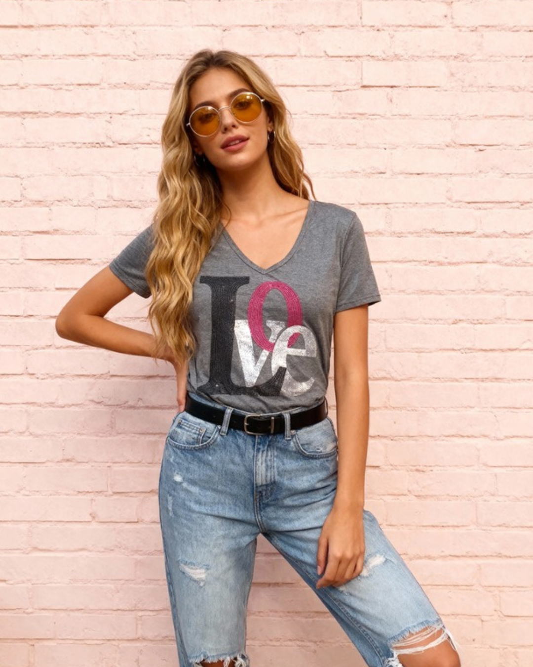 Esta remera de algodón gris es perfecta para quienes buscan estilo y comodidad. Con un corte en V y un fit relajado, presenta un atractivo gráfico que destaca la palabra «Love» en un diseño moderno y elegante. Ideal para combinar con jeans o shorts, es una opción versátil para el día a día. Su tejido suave garantiza un ajuste cómodo y fresco, convirtiéndola en una prenda esencial para cualquier guardarropa casual. Añade un toque de amor a tu look con esta blusa única.