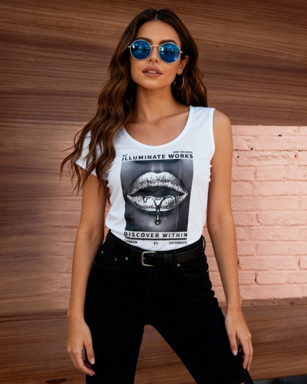 Remera gráfica blanca con diseño de labios y mensaje inspirador